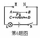 6.在如下图所示的电路中,用滑动变阻器控制灯的亮度,若要求滑片P向左端滑动时灯逐渐变亮,则下列接法正确的是