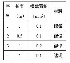 7.某同学为研究导体电阻的大小、与长度、材料、横截面积是否有关,他保持电路两端的电压不变,把下表中合金线分别接入该电路中,测出通过合金线的电流大小,进行研究,则
