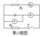 13.在如图所示的电路中,电源电压保持不变。当开关S由断开到闭合时,电流表A1的示数将________,电流表A的示数将________,电压表V与电流表A示数的比值将__________。(选 填“变大”、“不变”或“变小”)