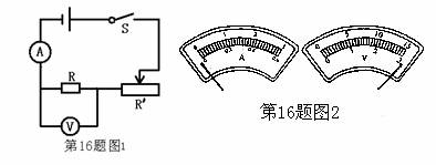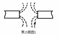 15.⑴、如图1所示,根据小磁针静止的指向标出磁铁N、S 极和磁感线方向:(小磁针漆黑一边为N极)