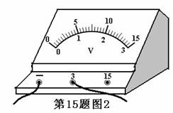 ⑵、电压表接线柱连接如图2所示,此时电压表的示数为2.5 V,在图中画出电压表指针所指的位置.