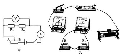 (1)根据电路图,请你在图乙中用笔画线代替导线将没有连接完的实物电路连接好(导线不允许交叉且电流表的量程选取要适当)。(2分)