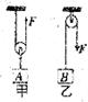 7.如图所示,用两个滑轮分别匀速提升A、B两个物体,拉细绳的力F大小相等,物体上升的距离也相等,摩擦不计,滑轮的质最小于物体的质量,甲的有用功为