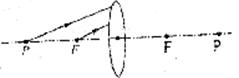 19.如图所示,有分别从凸透镜的两倍焦距和一倍焦距处射向透镜的光线,在图中画出它们通过透镜后的光路(P是与透镜距离等于2倍焦距的位置)。