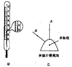12.甲是小红同学测量体温时的示数,她的体温是 ℃。常用体温计的刻度部分为三棱体,横截面如图乙所示,其正面呈圆弧形,进行读数时,若分别沿A、B方向观察,其中沿 方向观察易于读数,这是应用了 原理。