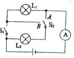22.在如图所示电路中,(1)当开关S1断开,S2与B接通时,电流表的示数是0.15A,则通过L1的电流是 A,L2的电流是 A.(2)当开关S1闭合,S2与A接通时,电流表的示数是0.8A,电流表测出的是 电流。
