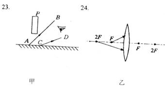 23.如图甲所示,平面镜上方有一竖直挡板P,AB和CD是挡板左侧的发光点S经过平面镜反射后的两条反射光线,请在图上作出发光点S。