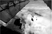 12.5月12日,汶川特大地震发生后, 抗震救灾指挥部决定采用空降的方法抢救被困的灾民。图为解放军15名空降兵勇士在地形十分复杂、气候特别恶劣,又无地面指挥引导、无地面标识的情况下,奋不顾身地从4999米高空跳伞的情景。他们跳出飞机舱门,在打开降落伞之前下降的速度越来越大, 这一过程中伞兵勇士的