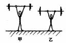 19.两名运动员,甲比乙高,如果他们举起相同质量的杠铃所用时间相等,如图所示,则
