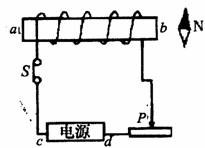 1、如图所示,当开关S闭合时,通电螺线管旁小磁针的N极向b方向转动,则通电螺线管的a端为 ___________极,电源的d端为_________极,当图中滑动片向左滑动时,小磁针受到的磁场对它的作用力 (选填“变大”、“变小”或“不变”)。