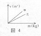 17.如图4所示是甲、乙两种物质的体积--质量图像,由图像可知: