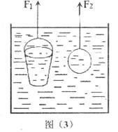 7.如图(3)所示将系于绳端质量相同的无盖铁桶和实心铁球同时浸没于水中静止在图示位置,绳子的拉力F1和F2的关系是: