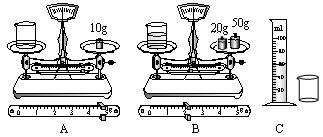 ⑵小明在古镇买了一瓶米酒。回家后,按下图所示A→B→C的顺序进行了实验,测出了米酒的密度。由下图所示数据求得米酒的密度为 kg/m3。