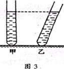 12.如图3,甲、乙两支完全相同的试管,分别装有质量相等的液体,甲试管竖直放置,乙试管倾斜放置,两试管液面相平,设两试管底受到液体压强分别为
