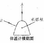 20.常用体温汁的刻度部分为三棱体,横截面如图所示,其正确望圆弧形。进行凑数时,若分别沿A、B方向观察。其中沿 方向观察易于读数,这是应用了 原理。