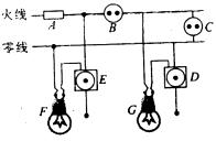 2.小莉学过家庭用电知识后,安装了某房间的照明电路(如图),经检查发现有三处错, 、 、 。(填字母代号不用说出错误原因)(3分)