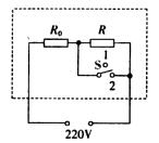 2.CFX.B型“220V 1100W”电饭煲的原理图如下图所示,它有高温烧煮和焖饭、保温两挡,通过单刀双掷开关S进行调节,R0为电热丝。当开关S接高温烧煮挡时,电路的功率为1100W,当开关S接焖饭、保温挡时,电路的总功率为22W。