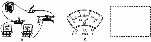 (1)如图甲所示,为实验小组未完成的实物电路,请用笔画线代替导线完成实物电路的连接;并根据实物连接图,在上右虚线框中用规定的电路符号画出相应的电路图。