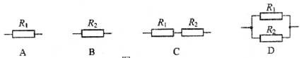 5.如图所示,已知Rl>R2,将它们以下列四种方式接入同一个电路,其中电阻最小的是.