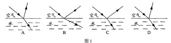 5.一束光从空气斜射向水中,如图1所示,能正确表示光的传播路径的图是