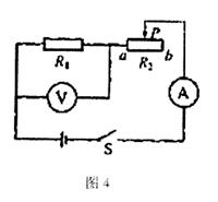 10.图4所示的电路中,电源两端电压为6V并保持不变,定值电阻R1的阻值为10 Q,滑动变阻器R2的最大阻值为50