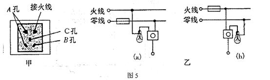 12.如图5甲是一个家庭电路中常用的插座,其中C孔应接 。乙图是某同学连接的两个家庭电路,其中正确的是 图。