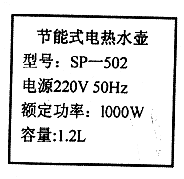 18.高效、方便的电热水壶目前已成为家庭常用的用电器之一。下面是一种电热水壶的铭牌。如果用这种电热水壶将1L水15℃烧开(大气压为iatm)。求: