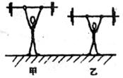 19.两名运动员,甲比乙高,如果他们举起相同质量的杠铃所用时间相等,如下图所示,则