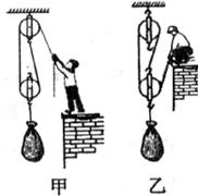 26.用相同的滑轮和绳子分别组成如下图所示的甲、乙两个滑轮组,把相同的物体提升相同的高度,在不计绳重及机械摩擦的情况下,甲所用的拉力 乙所用的拉力;甲滑轮组的效率 乙滑轮组的效率(填“大于”、“等于”或“小于”)。