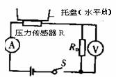 (2)压力传感器R的阻值会随压力的大小发生变化,它们间的关系如下表所示。已知R0的阻值为50Ω,电源电压30V,当电压表的示数为10V时,电流表示数多大?被测物体的质量有多大?(4分)