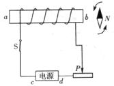 端为 极,当图中滑动片向左滑动时,小磁针受到的磁场对它的作用力