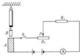 16.如图所示,A为螺线管,B为悬挂在弹簧测力计下的铁块,R1为定值电阻,R2为滑动变阻器,当滑片P从左端移到右端时 ( )