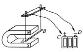 (1)当C、D两个线头没有接到电池组的正、负极上时,AB棒保持静止不动,而一旦使C、D两个线头接触到电池组的正、负极时,AB棒立即摆动起来,这一现象说明了什么?