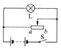 15.小宇同学设计了一盏可调亮度的简易台灯.如图所示为电路原理图,其中L为小灯泡,R为滑动变阻器,E为电压保持不变且低于安全电压的电源,S为开关.关于这盏台灯,下列说法中正确的是 ( )