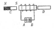 3.如图所示.电磁铁左侧的C为条形磁铁。右侧的D为软铁棒,A、B是电源的两极。