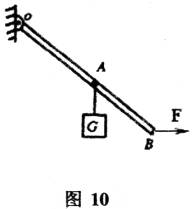 18.如图10所示,一根轻质杠杆可绕O点转动,在杠杆的A点挂一重物G,在杆的另一端施加一个方向始终保持水平的力F。画出力F的力臂LF、重力G的力臂LG。