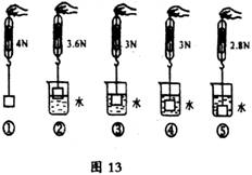21.韦聪同学为了探究浮力的大小跟什么因素有关,他做了图13所示的实验.