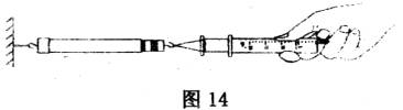 ②如图所示,用细尼龙绳拴住注射器活塞的颈部,使绳的另一端与固定在墙上的弹簧测力计的挂钩相连,然后水平向右慢慢地拉动注射器筒,当注射器中的活塞刚开始移动时,记下弹簧测力计的示数F;