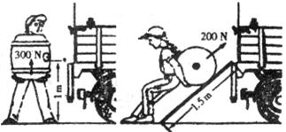 11.如下图所示,某人分别用300N和200N的力,将同一个装有水的容器从地面上直接搬到车上和通过斜面搬到车上。下列说法中正确的是