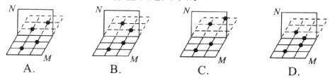 11.如图所示,M是一个放在桌面上的方格盘,N是垂直于盘面的一块玻璃板.盘中有两粒黑色棋子,它们在玻璃板中所成的像应该是图中的 ( )