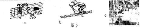 15.图5中的a、b、c是三项体育活动示意图,请你按示例将下表补充完整,并写出你知道的另一种体育项目并按示例要求填写表格。