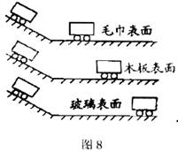 25.如图8为探究摩擦力对物体运动的影响的实验。实验时必须使小车从斜面上同一高度滑下,这是为了使小车在平面上开始运动时的 相同,实验时发现小车受到的摩擦力越小,小车运动得越 .由此我们可以推断:假如小车在平面上不受力,它将 .