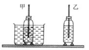 小明注意到妈妈是把饭菜放在空气中冷却的,而厨房中适合用来冷却的另一种物质就是水.水和空气哪个的导热性能好呢?为此小明用两个相同的牛奶瓶,都装入热牛奶,一个放在温度与室温相同的水中,另一个就放在空气中,为了尽量减少其他因素的影响,他把两个瓶都用木块垫起来,放在同一个桌面上.如图所示.实验时他每隔一定的时间记录一次甲、乙两温度计的示数,得到的数据如下表: