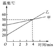 3.甲、乙两物体质量之比是4:1,用两个相同的酒精灯分别给它们加热,设酒精灯放出的热量都被它们吸收,甲、乙两物体温度随时间变化的曲线如图所示,若甲的比热容是0.4×103 J/(kg·℃),则乙的比热容是 .