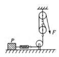 6.如图所示,用滑轮组拉着一只木块P沿水平面以0.5m/s速度向右运动,此时弹簧