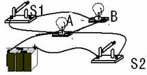 4、如图,请在下面横线上填写当开关S1、S2 处于以下状态时,灯泡A.B 的亮熄的情况: