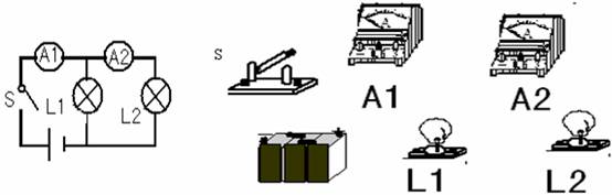 21、请把乙图中的实物按甲电路图连接起来,已知开关S闭合后L1中的电流为0.3A,L2中的电流为0.5A。