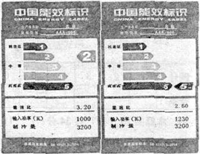 27.我国对家用电冰箱、空调这两个产品率先实施能源效率标识制度,以后生产、销售、进口的空调、冰箱均应在显著位置粘贴“中国能标识”的标签。如图所示,能效标识将能效分为1、2、3、4、5五个等级,等级1表示产品最节能,等级5是市场准入指标,低于该等级要求的产品不允许生产和销售。