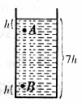 8.如图所示的容器中,水的深度为7h,A点距水面深度为h,B点离容器底部的高度为h,则在A点和B点水所产生的压强为PA、PB;之比为 .