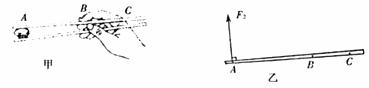 2.筷子是我国传统的用餐工具,它应用了杠杆的原理,如图甲所示,请你在图乙中标出这根筷子使用时的支点O。并画出动力F1和阻力臂
